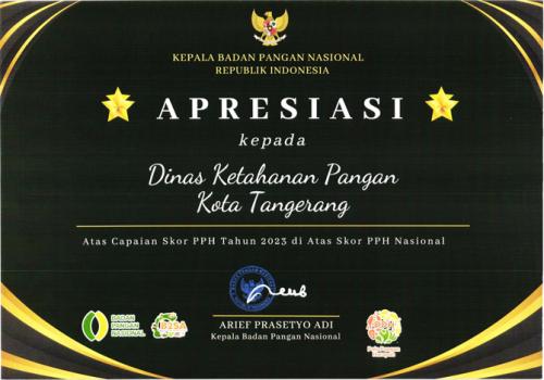 MediaBintang.Com, Kota Tangerang – Pemerintah Kota Tangerang melalui Dinas Ketahanan Pangan (DKP) mendapatkan apresiasi dalam upaya dan komitmen peningkatan kualitas keanekaragaman konsumsi pangan melalui capaian skor Pola Pangan Harapan (PPH) kabupaten/kota tahun 2023 dari Badan Pangan Nasional (Bapanas).